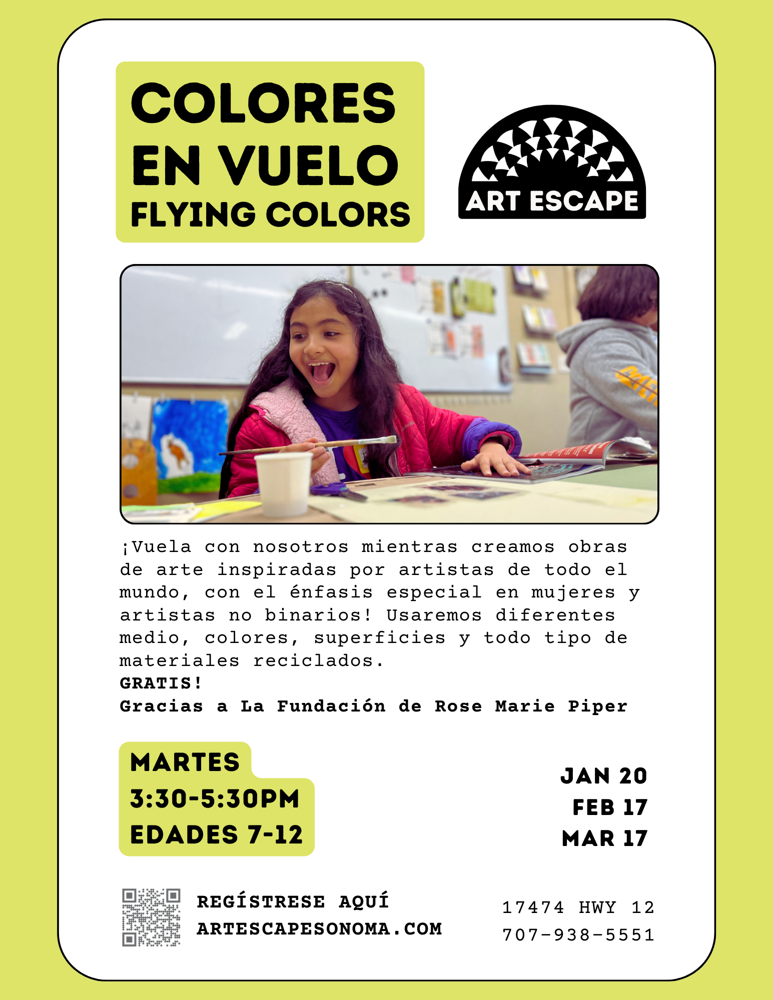 Please click on the button below to submit an application, or contact Art Escape for more information on the scholarships available.